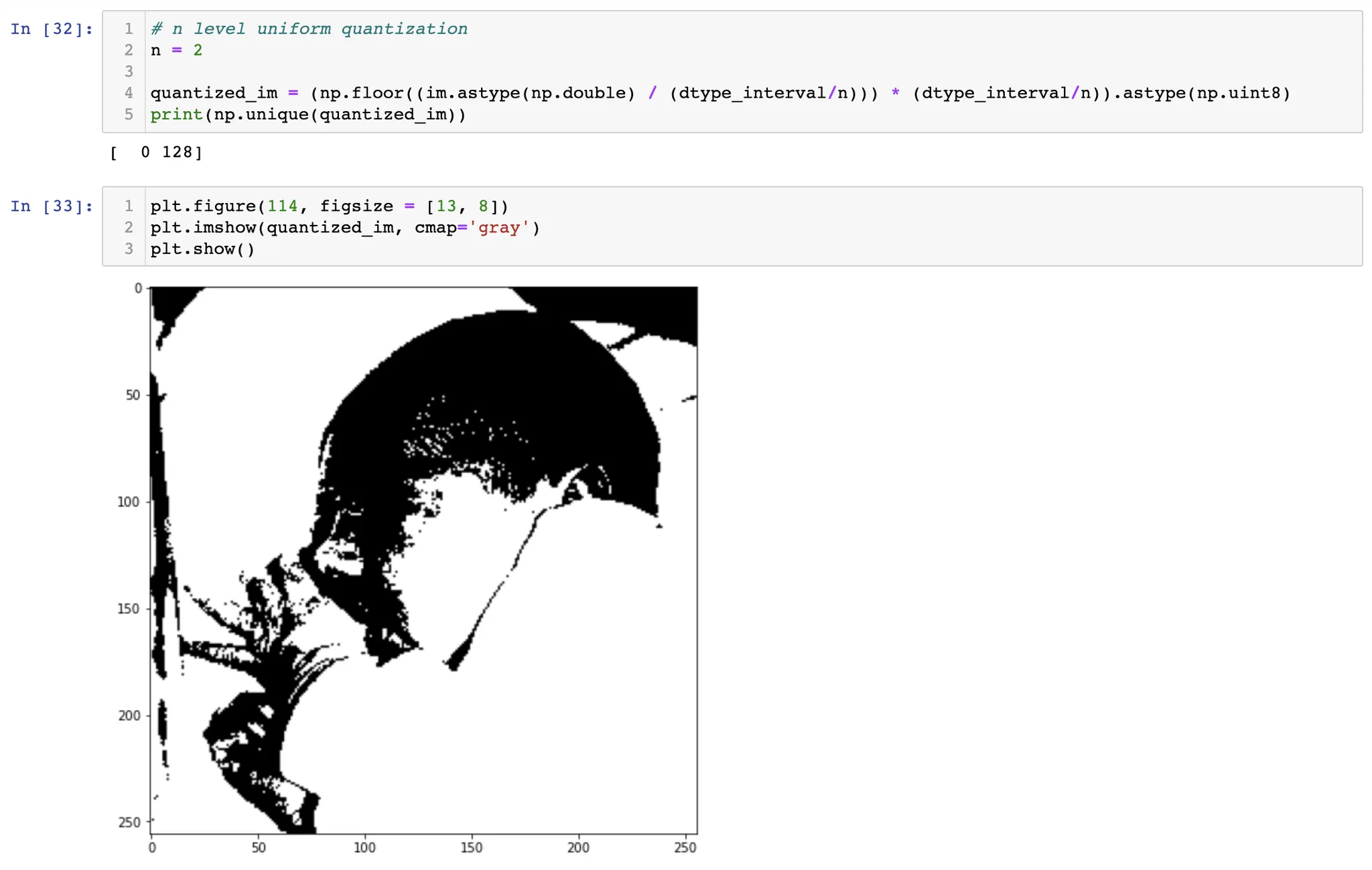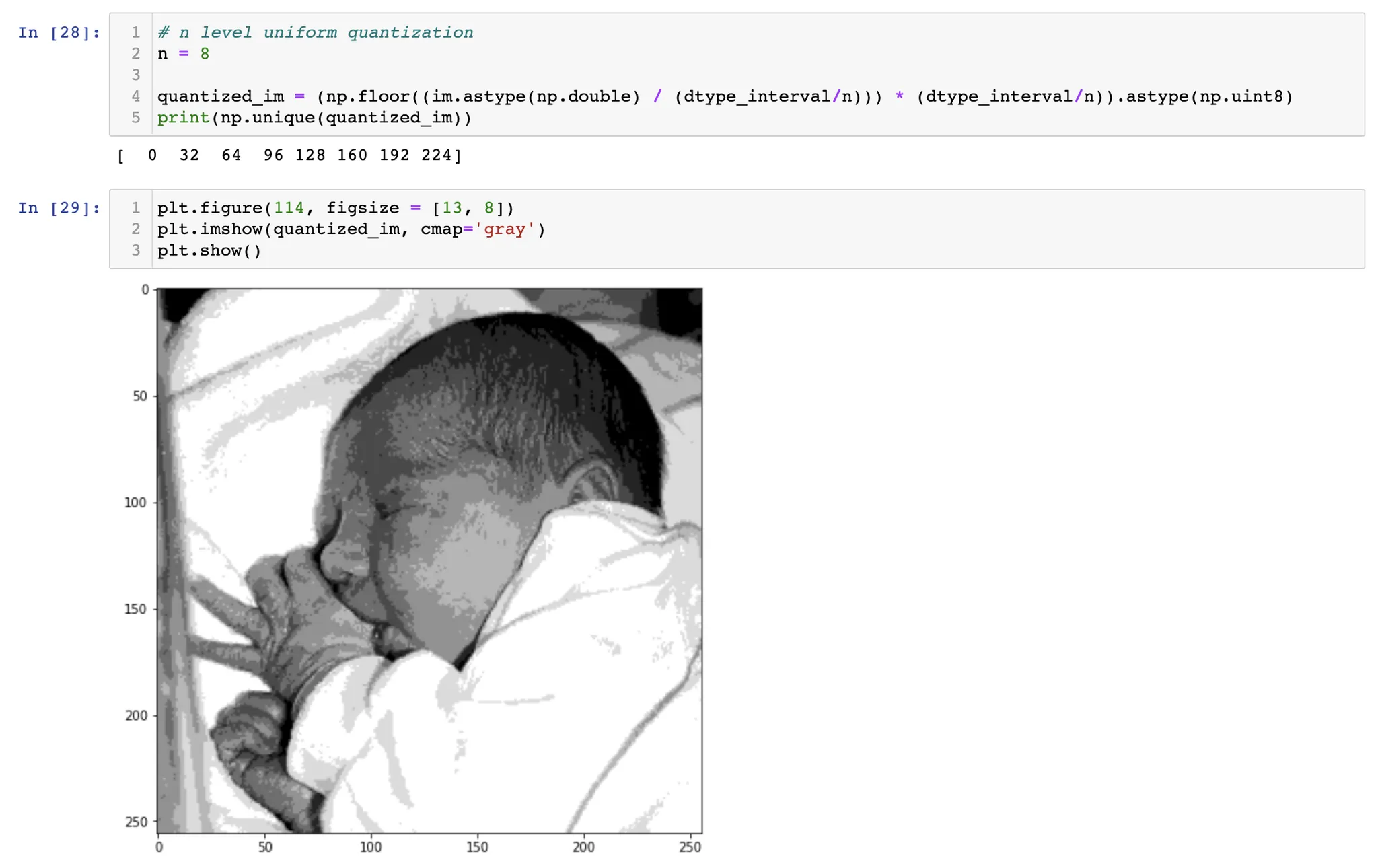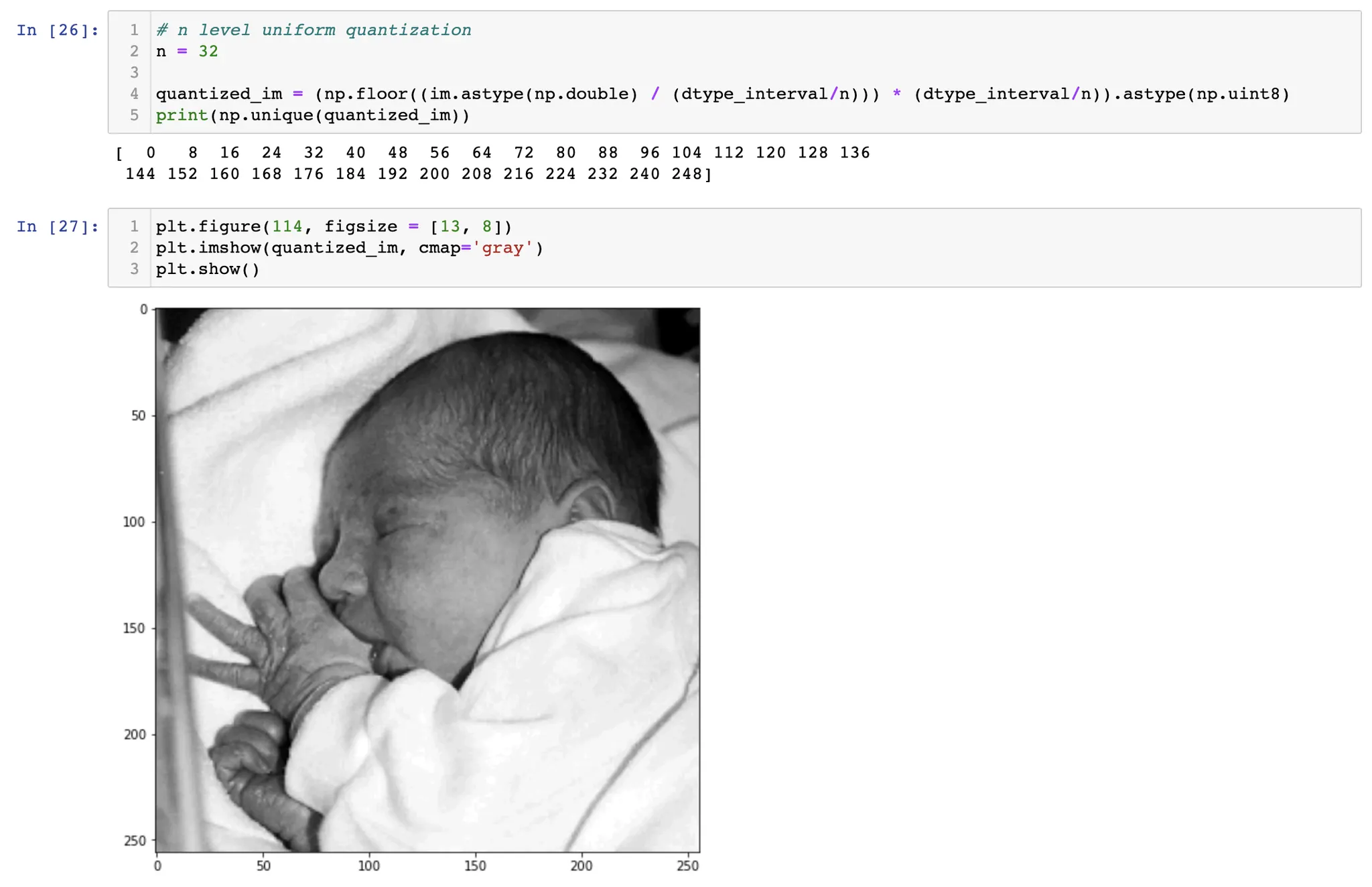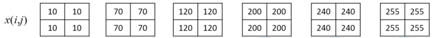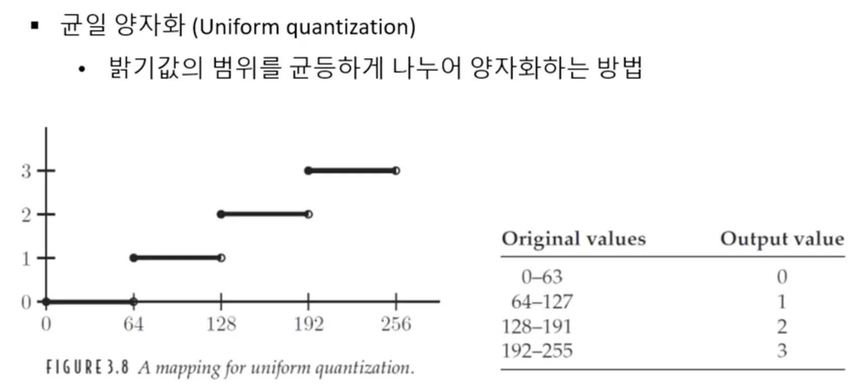 기본 영상은 256개의 ( = uint8 = 2^8 ) 개의 숫자로 양자화한다. 상황에 따라 256개보다 적은 수의 밝기값으로 양자화할 필요가 있다.