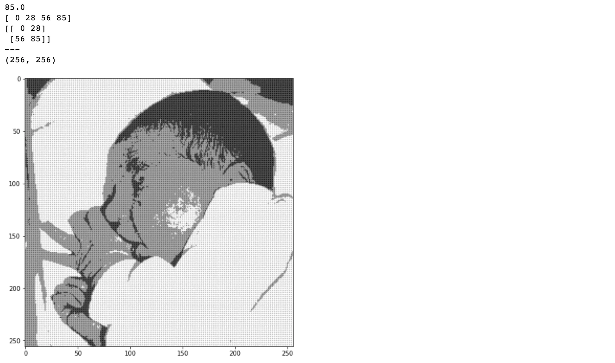 이때, 85 라는 값은 를 통해 도출된 값이다. 여기서 까지는 uniform quantization 결과물과 별반 다를 것이 없다. 하지만 우리는 dithering 을 하고 있지 않은가.