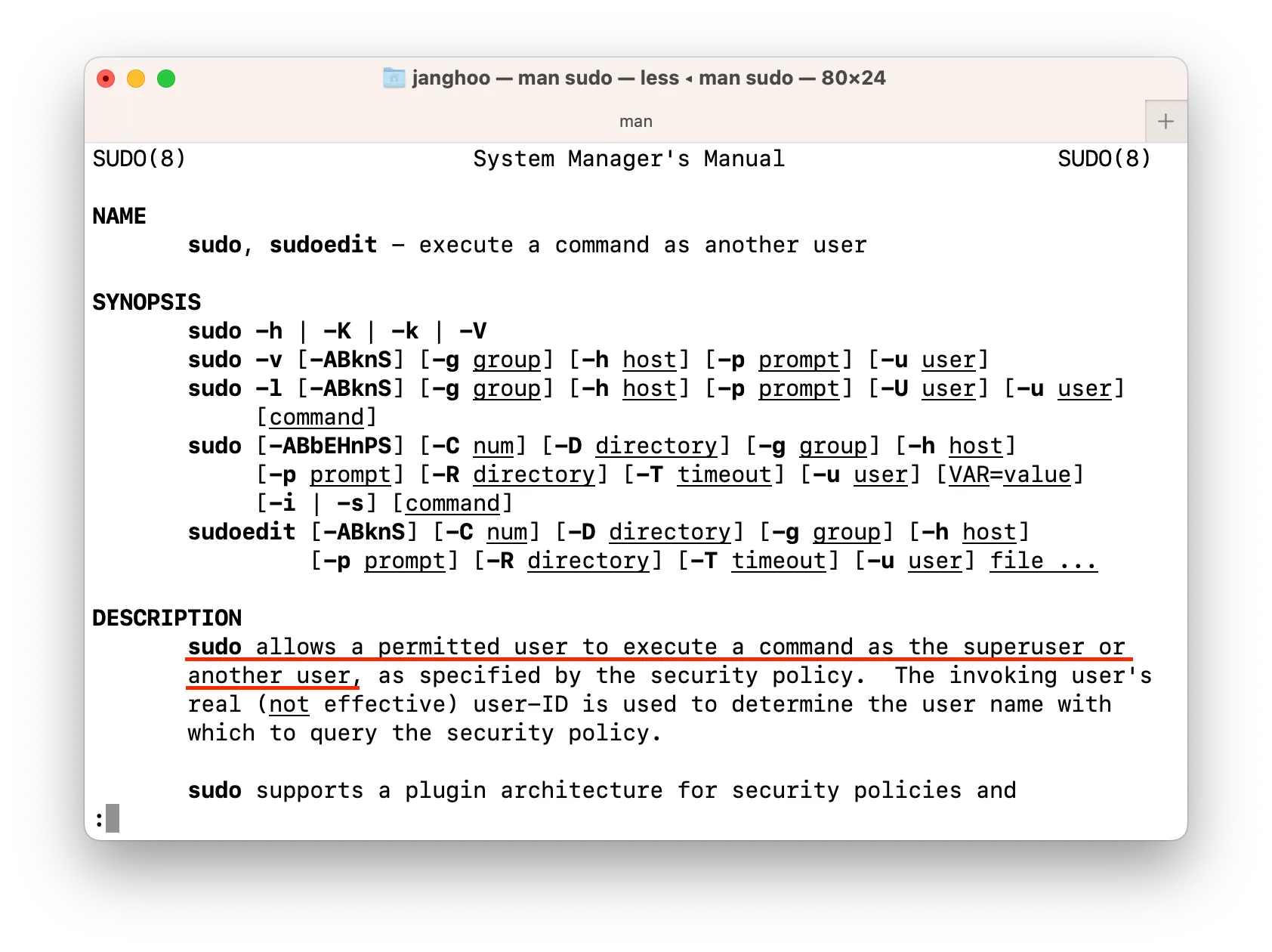 사실 모든 것에 익숙하지 않았던 2021년의 나는 이 토글에 숨겨둔 글이 잘 와닿지 않았다. 하지만 지금 보니 이 글은 sudo를 함부로 사용해서는 안 되는 이유를 잘 설명해 두었다.