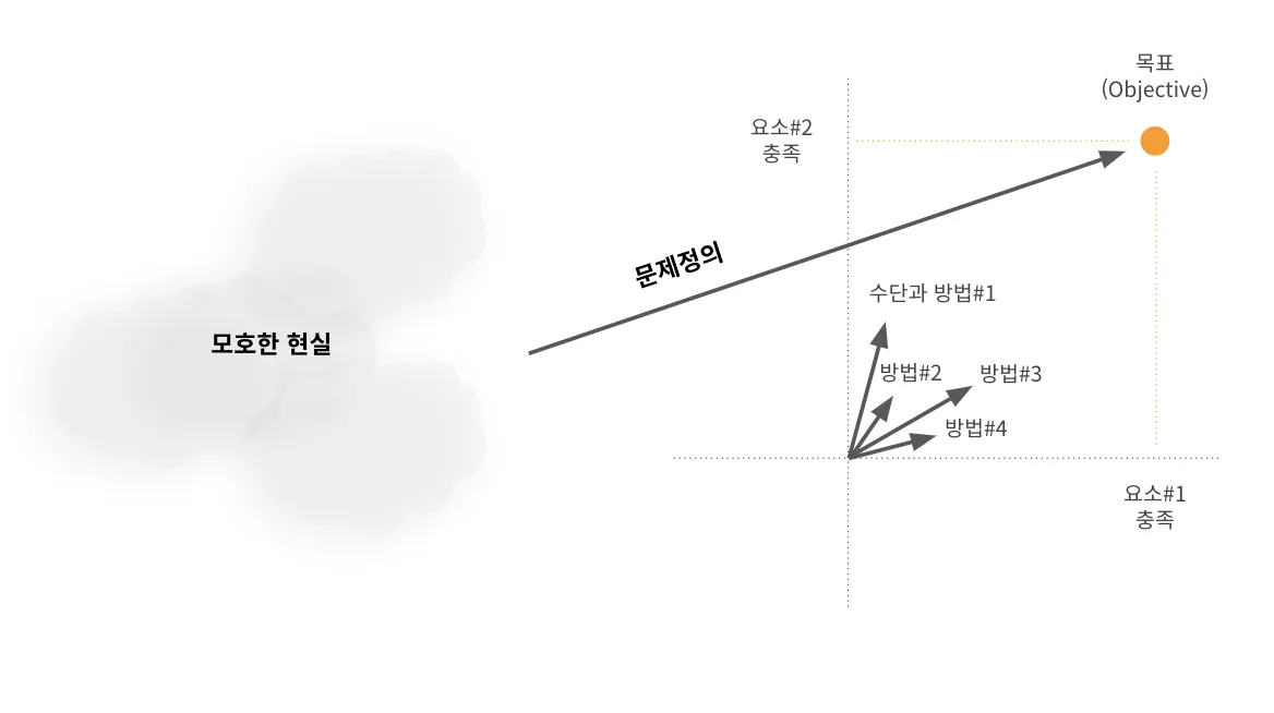 나는 문제정의는 좌표공간, 목표는 하나의 점, 수단과 방법은 벡터의 방향과 크기라고 생각을 했어. 뭐 이상한 용어들이 등장했는데, 한번 내 생각을 이야기해 볼게.