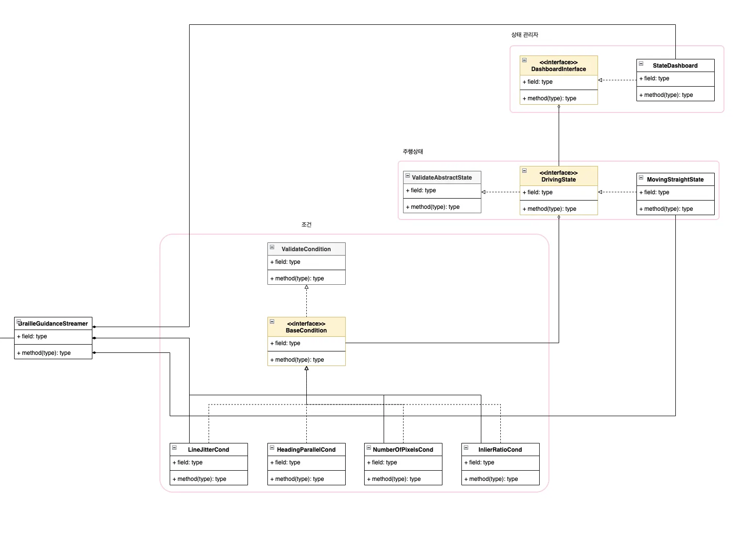 어떤 주행상태 (점자블럭이 보이고 직진하는 상태) 들은 특정 조건들에 의해서 발동된다.