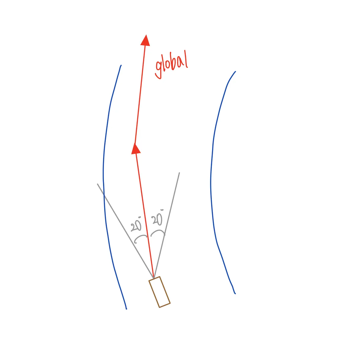 global map (지도 API) 에는 어디가 횡단보도이고 어디가 교차로인지에 대한 정보가 개략적으로 나타나 있다. 따라서 global map 의 레이아웃과 현재 비전으로 수집되는 정보를 잘 비교해 보면 global map 상에서의 현재 위치도 어느정도 알 수 있을것이다.