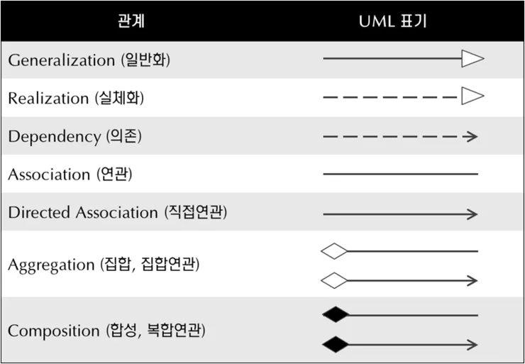 난 처음 이것들을 다 외워 버리려고 했다. 뭐 화살표를 외워 버리는 것도 좋다. 하지만 이친구 이거 생각보다 이해할만하다. 한 번 이해해두면 잊기 쉽지 않다. 상속관계와 기호는 이해했지만 연관관계와 기호들이 이해되지 않는다면, 모든 것을 지우고 의존과 연관 기호의 의미를 먼저 이해해야 한다.