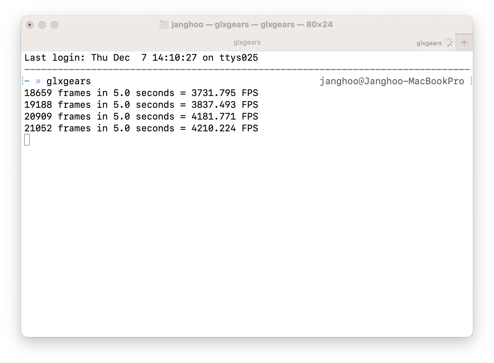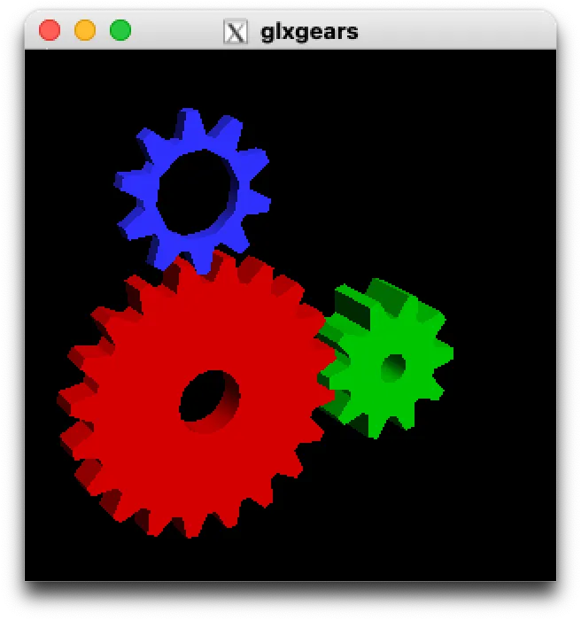 옵션이 잘 적용되었는지 확인하려면 호스트 컴퓨터에서 glxgears 실행