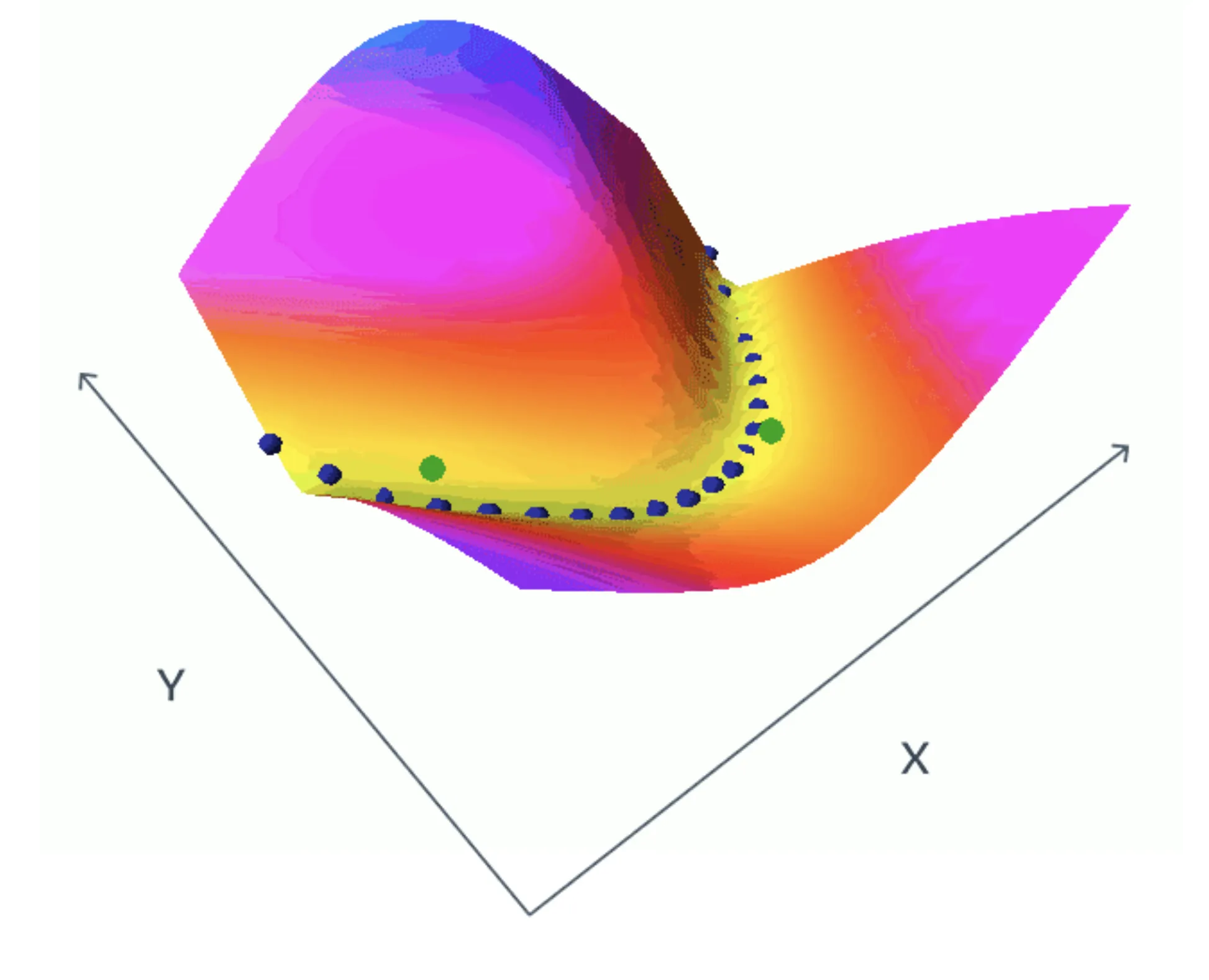 파랑 점 : energy of compatible (x,y) pairs from the training set
