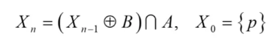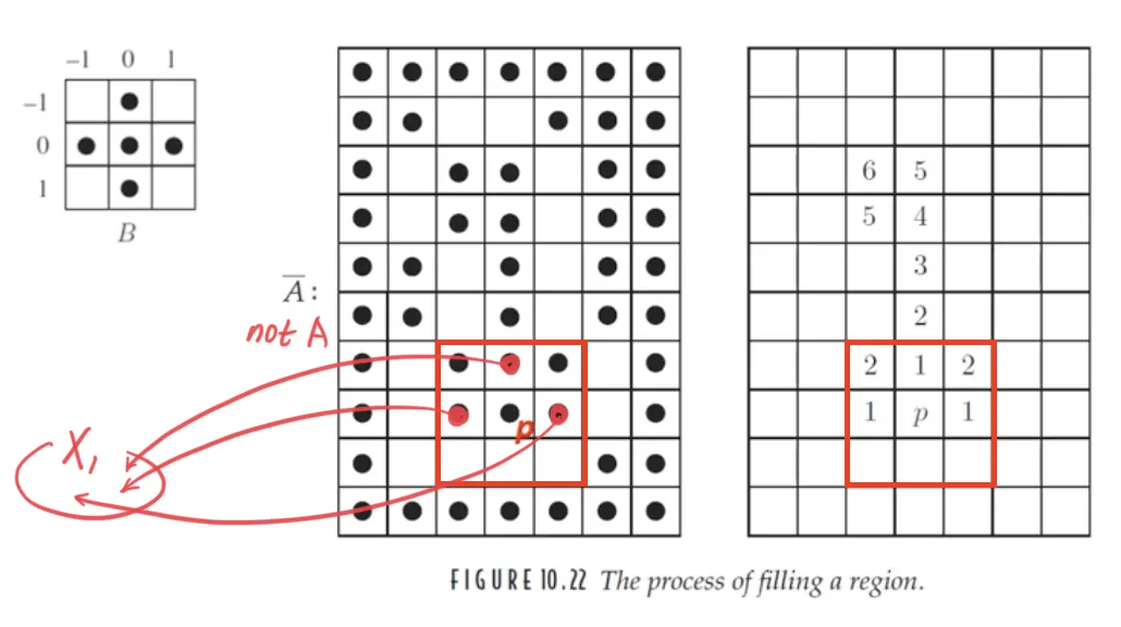 p 와 B 의 팽창 연산 수행 결과와 ~A 의 교집합을 계산하는 동작을 반복하여 영역을 채울 수 있다.