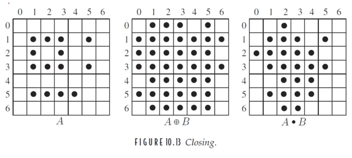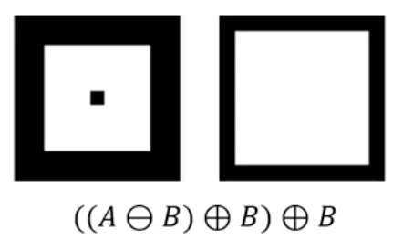 닫힘 연산은 1 의 위치의 0 의 잡음을 제거하는 데에 효과적일 수 있다.