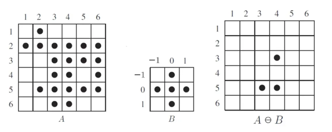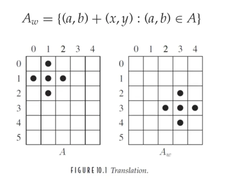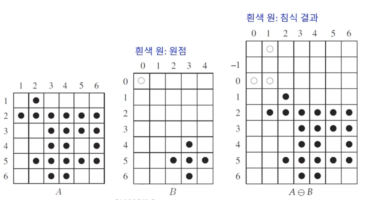 A 와 B 는 이진 (binary) 영상 화소들의 집합이다.