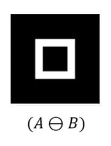 침식된 이미지 A' 에서 열림연산을 취하고 그 나머지를 구해 (A'-O') 라는 변두리를 얻는다.