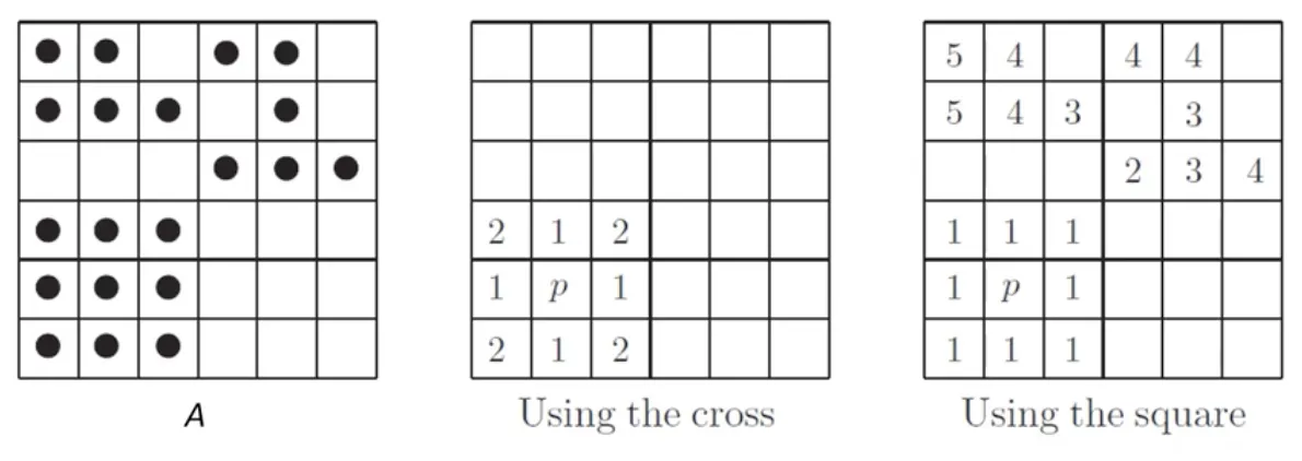 binary 영상에서 특정 커널에 의한 팽창 연산은 아래와 동일한 연산이다.