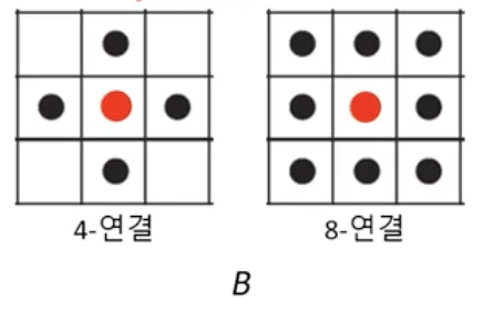 연결을 정의하는 일반적인 방법으로는 4연결과 8연결이 있다.