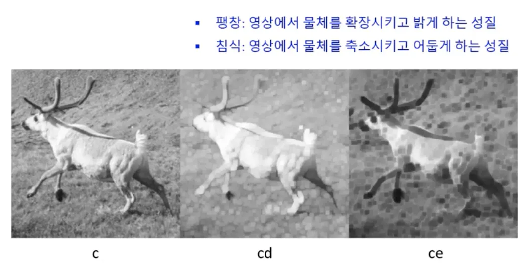침식 연산을 적용한 뒤, 팽창 연산을 적용한 것은 열림 연산이니까 (opening)
