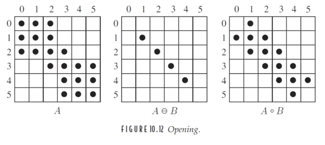 A 에 열린연산을 적용하면 열림연산 정리에 따라 A 의 부분집합만 남는다.