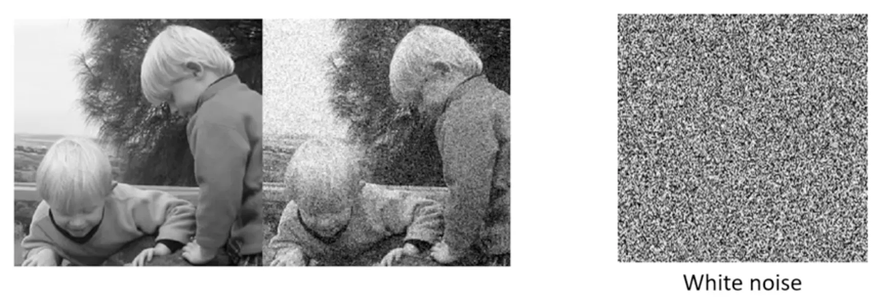 백색잡음(white noise)은 공간적 상관관계가 전혀 없는 무작위 변수이다. 각 픽셀에 들어가는 값은 평균이 0 이고, 유한한 분산의 정규분포로부터 샘플링한 값이다. 따라서 가우시안 잡음은 덧셈적인(additive) 백색 잡음이다.