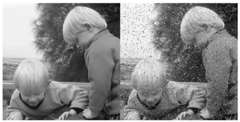 영상의 잡음은 카메라에서 광학 신호를 전기적 신호를 변환하는 과정 혹은 외부의 교란에 의해 센서에 추가되는 원치 않은 형태의 신호를 의미한다.
