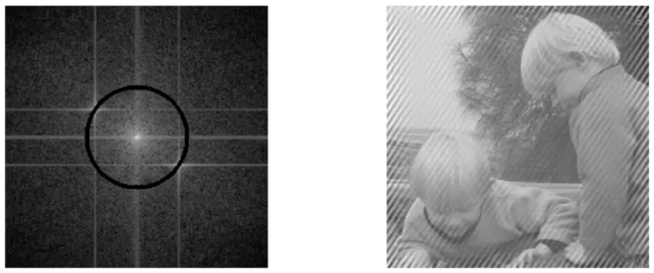 따라서 주기적 패턴을 보이는 잡음은 주파수 도메인 필터를 통해서 제거를 할 수 있다.