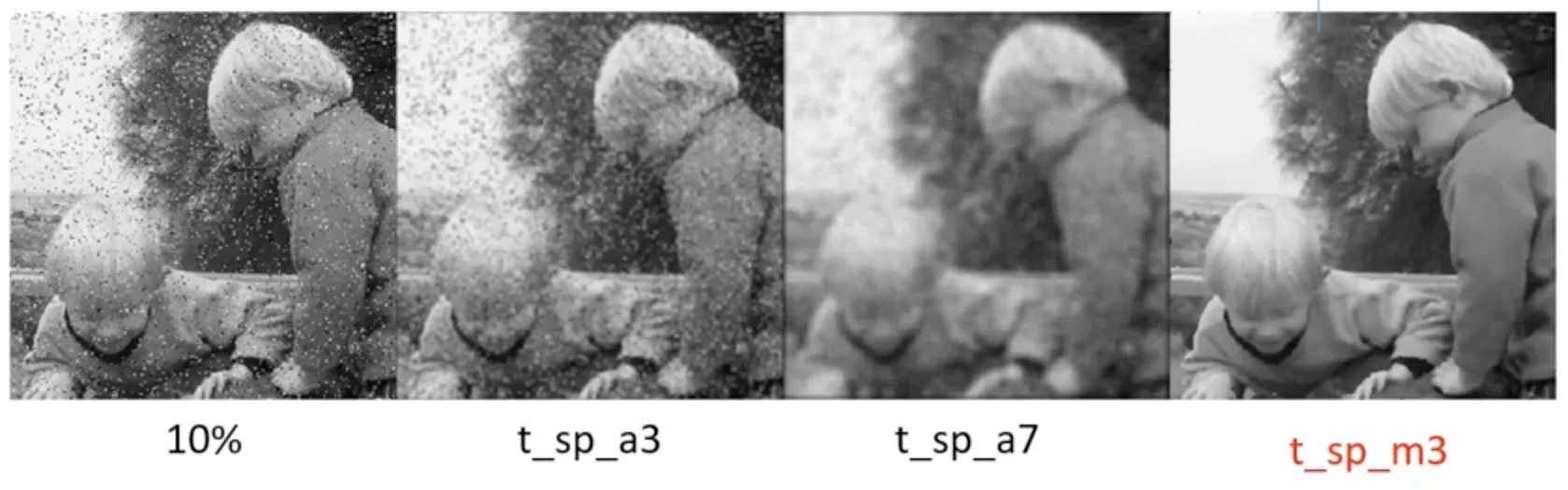 예를 들어, 중간값 필터(median filter)을 이용해 제거할 수 있다.