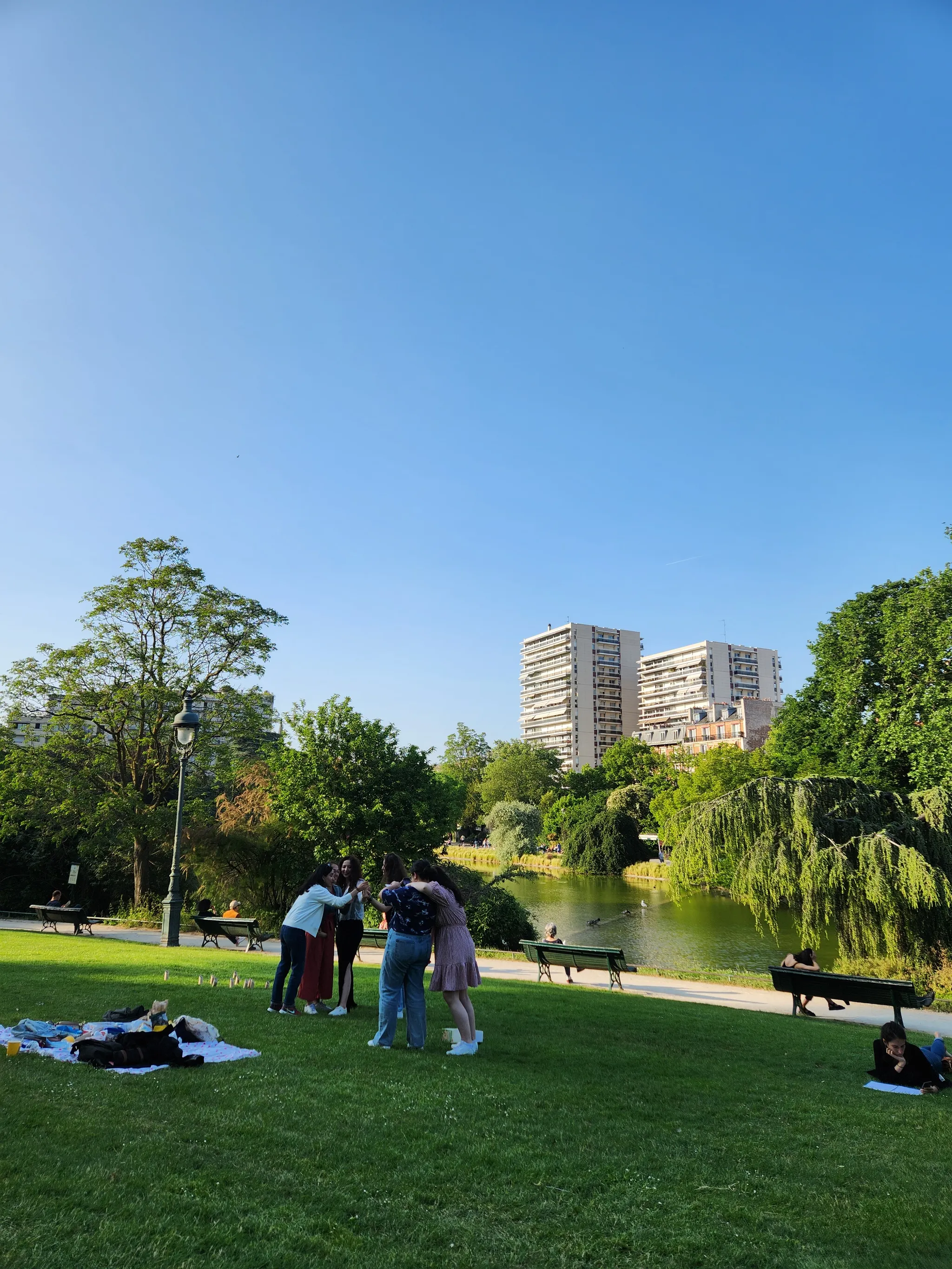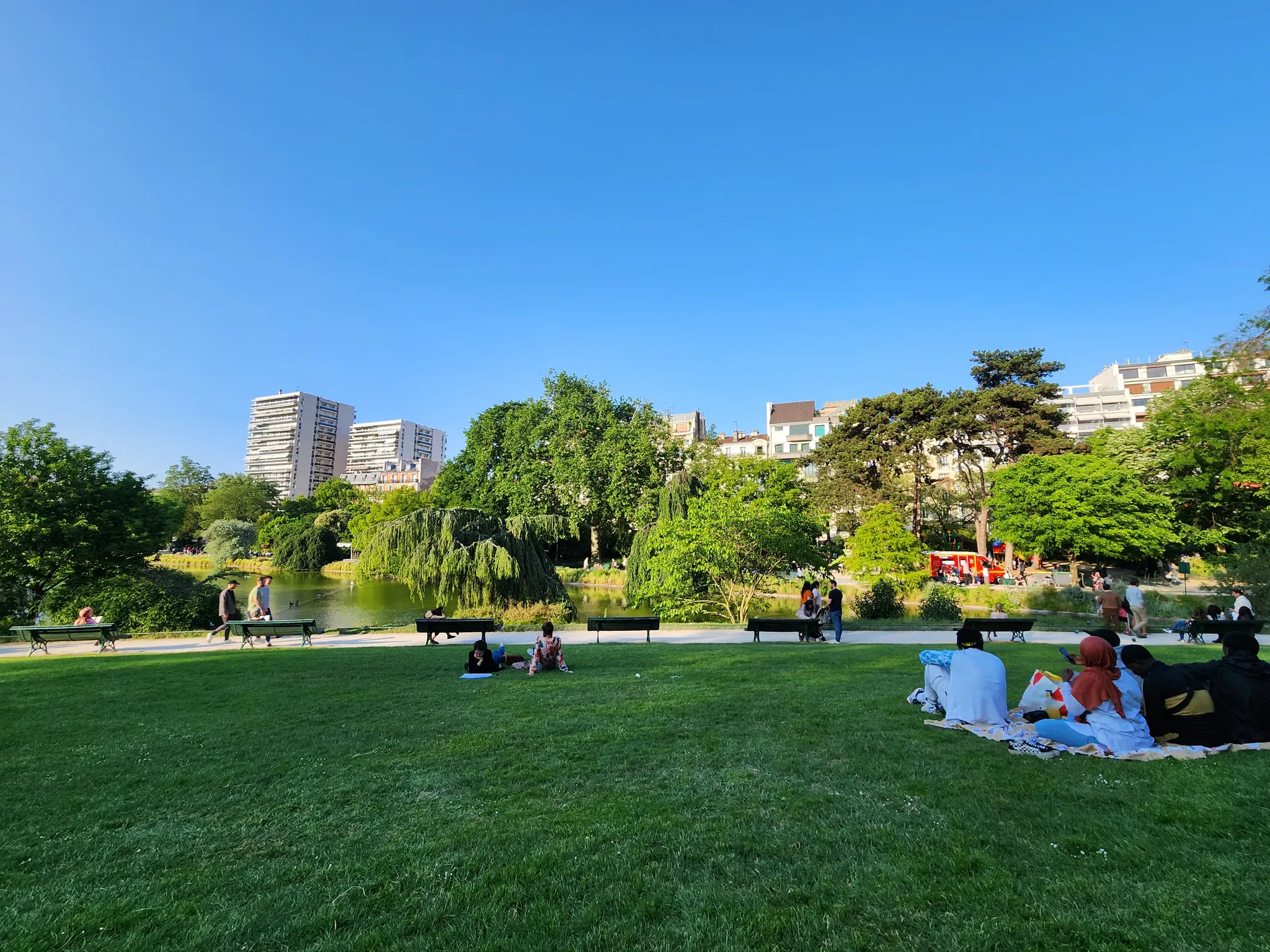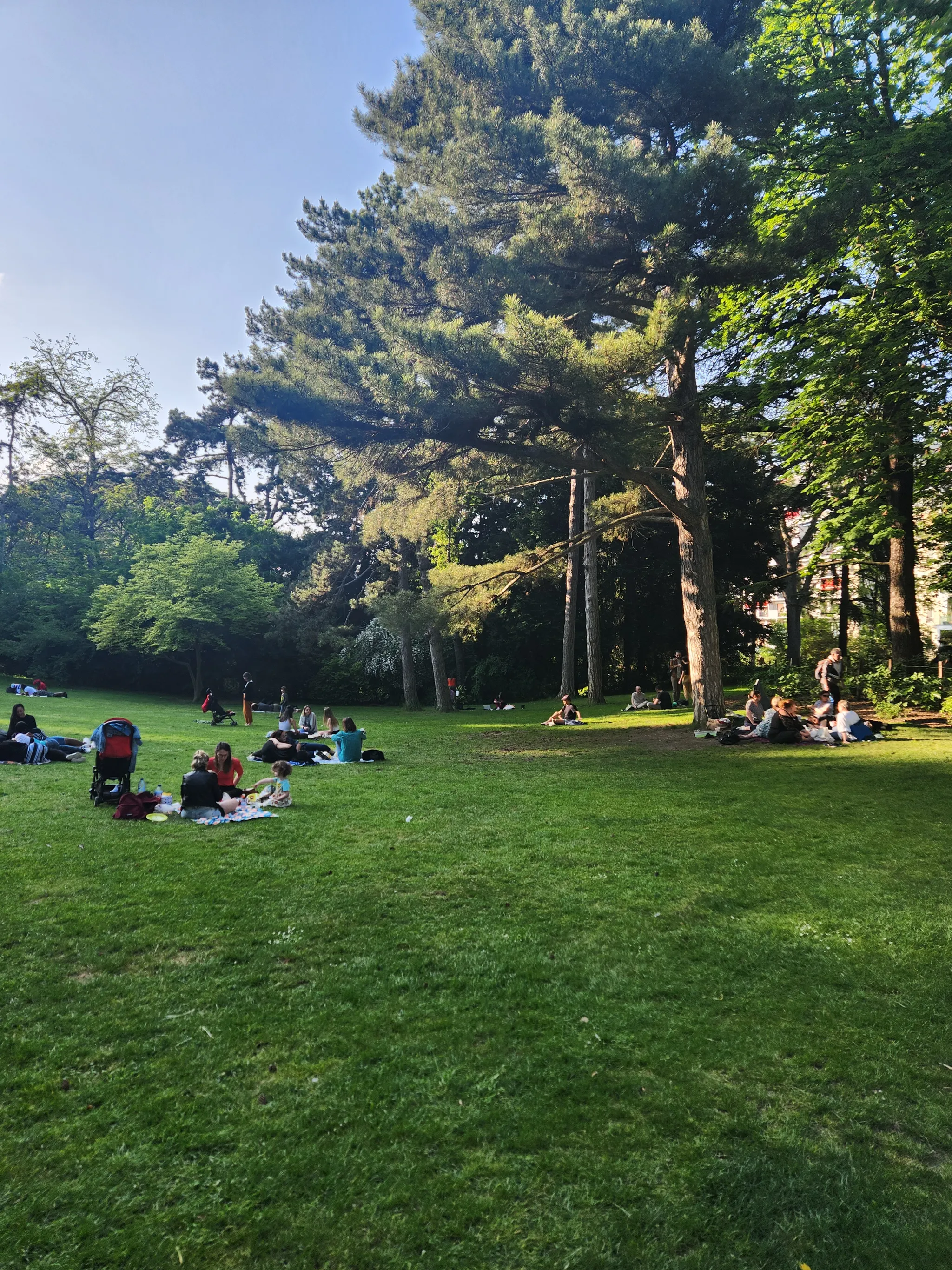 맑은 날 파리 13구에 위치한 몽수히 공원 (Parc Montsouris)