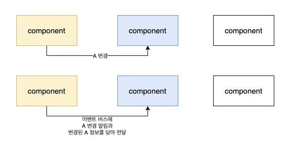 이를 해결하기 위해 이벤트 버스(Event bus)같은 방법을 도입하곤 하지만(참고2) 이 방법에도 문제가 있다. 이벤트버스에 무슨 문제가 있는지를 이해하기 위해 이벤트버스를 이용해 컴포넌트들 사이의 정보를 어떻게 주고받을 수 있는지 간단히 알아보자. 아래 스크립트는 어떤 컴포넌트에서 이벤트가 종료된 다음 발생하는 트리거이다.