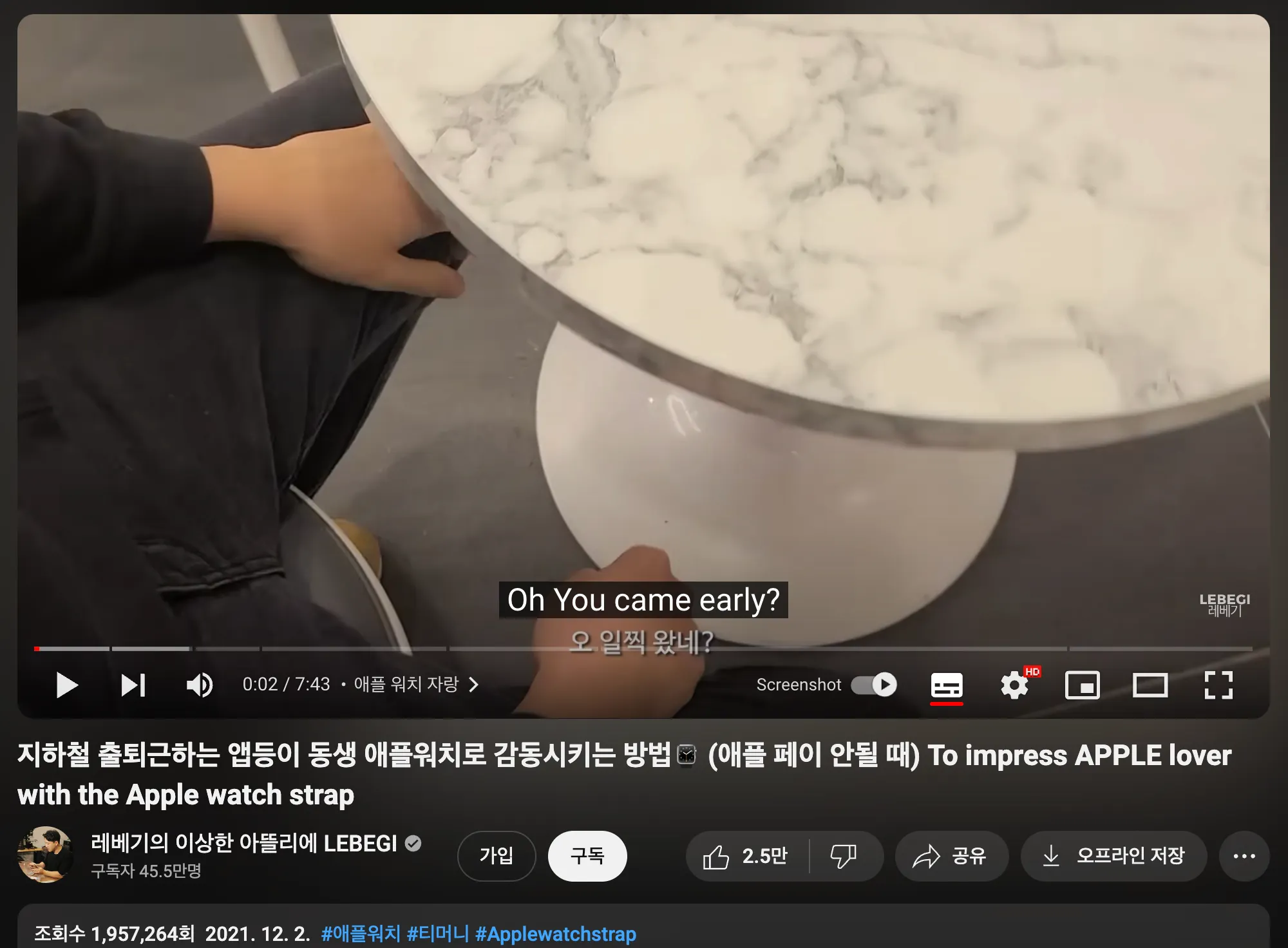애플워치 나이키 에디션은 장안의 화제였는데, 2021년 11월에 출시되었다. 동영상은 2021년 12월에 업로드되었으므로, 한창 사람들의 관심을 많이 받고 있는 키워드에 좋은 퀄리티의 영상과 함께 사람들의 CTR을 사로잡았다.