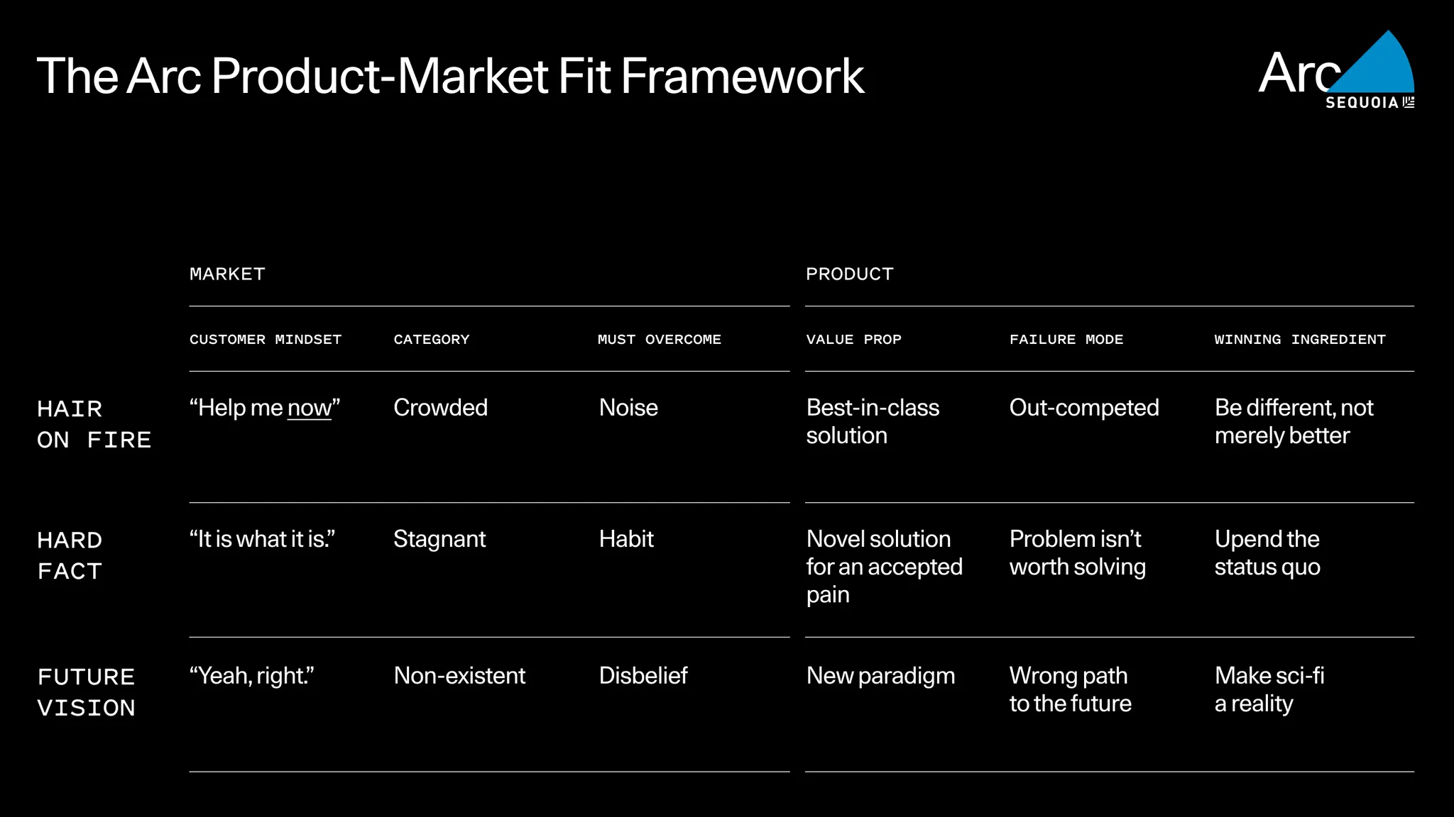 그러던 와중 세콰이어 아크는 PMF의 원형을 Hair on Fire 한 가지가 아니라 세 가지로 분류했다는 아티클을 접하게 되었다.
