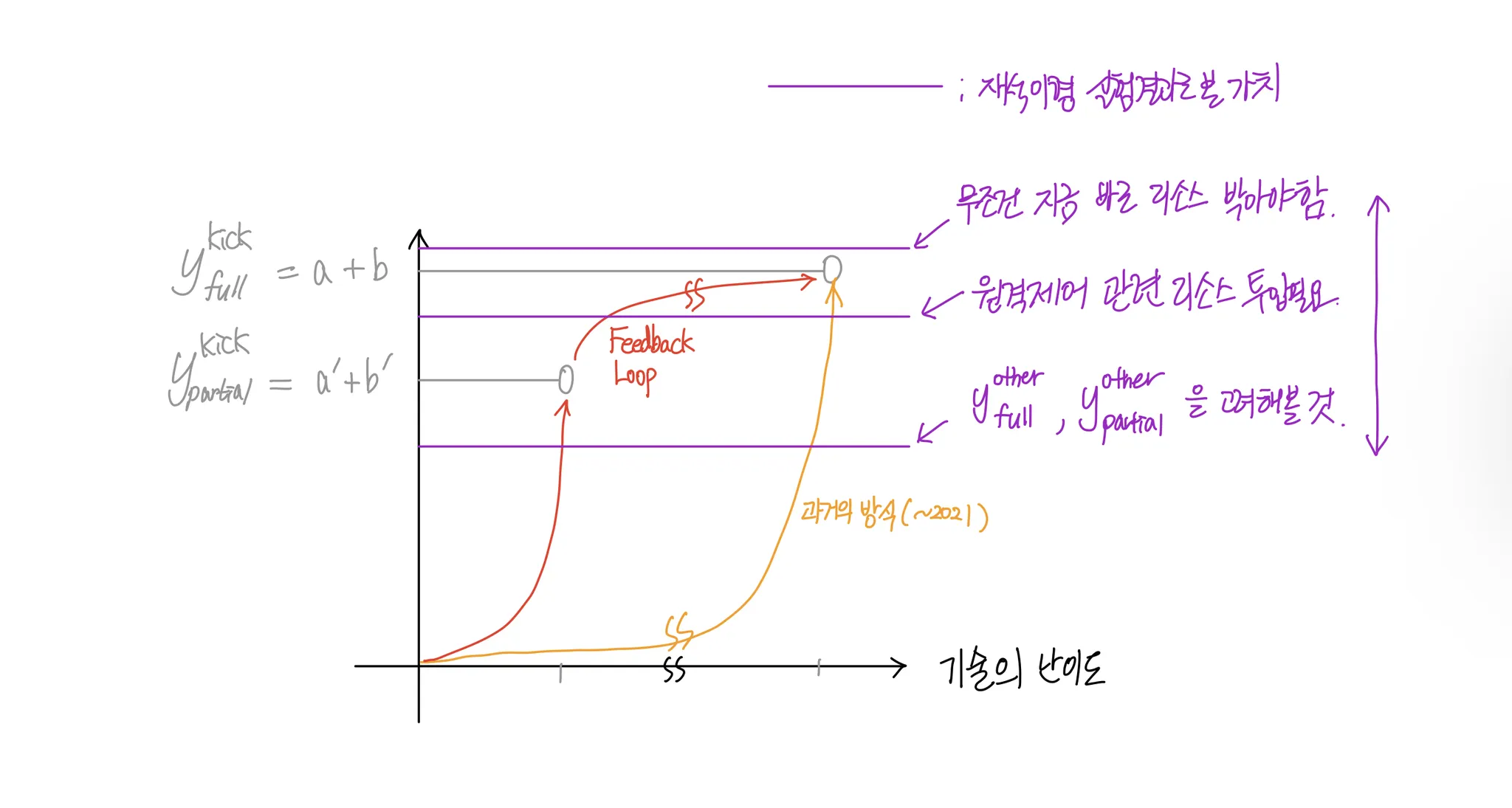 여기까지 고민했으면 당연히 이걸 고민하게 될 것 같아. 변동성이 무척 크겠지만 재석이형이 충분히 미리 고민해볼 수는 있는 부분이라고 생각해. 형은 킥보드시장에 대해서도 잘 알고 있고. 회사 사정에 대해서도 잘 알고 있으니까. 근데 만약 실험결과로 얻은 기대치가 저 위에 있는데 리소스를 안 쓴다는건 그냥 시간 낭비라고 생각해 가만히 시간이 간다고 해서 팩트가 더 수집되는 것은 없으니까. 그런데 또 킥보드만이 다는 아니다. 이건 킥보드만 생각했을 때야.
