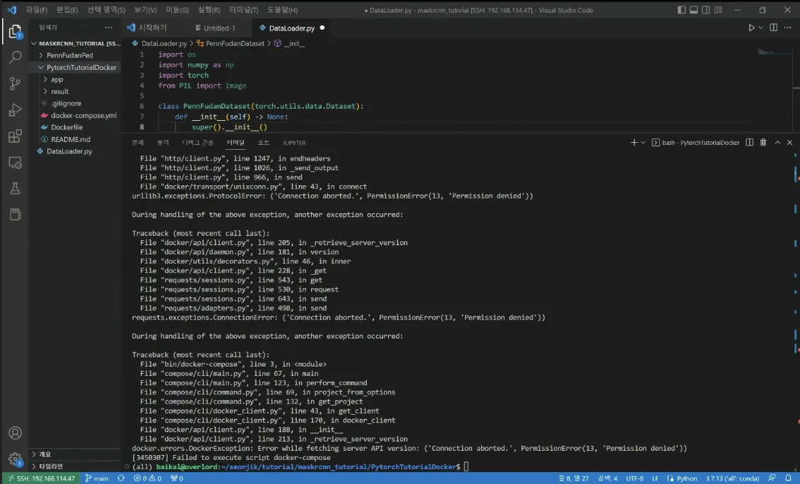 경태파트장님 혹은 심팀장님으로부터 두 개의 도커 계정 중 하나인 ailab 에 대한 권한을 받는다.