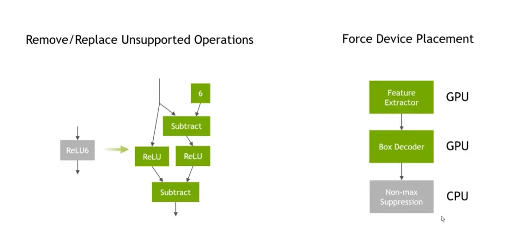또, GPU 에서 온전히 호환되지 않는 연산이 포함된 대단위 연산의 경우, CPU 에서만 수행하도록 하여 하나의 큰 단위에서 데이터가 CPU 와 GPU 를 왔다갔다 하지 않도록 강제하기도 한다. 예를 들어, NMS 라는 하나의 추상적인 연산 속에는, 일부는 GPU 에서 연산할 수 있지만 일부는 CPU 에서만 연산을 해야한다고 생각해 보자. 이 때, 경우에 따라 CPU-GPU 를 왔다갔다하는 것은 비효율적일 것이라는 전제이다.