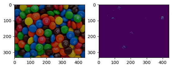 직관적으로 생각해볼 때, RGB 중 G 성분이 R과 B에 비해 상대적으로 높은 멘토스라면 초록색 멘토스라고 생각할 수 있겠다. 식으로 표현하면 다음과 같다. 는 해당 위치 의 초록 성분 픽셀 강도이다. 는 각각 위치 의 빨강, 파랑 성분의 픽셀 강도이다.