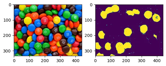 아래 영상을 이용해 색 공간 변환의 효용성에 대한 예를 들어 보자. RGB 색 공간에서 초록색 멘토스 영역을 추출하고 싶으면 어떤 작업을 수행해야 할까?