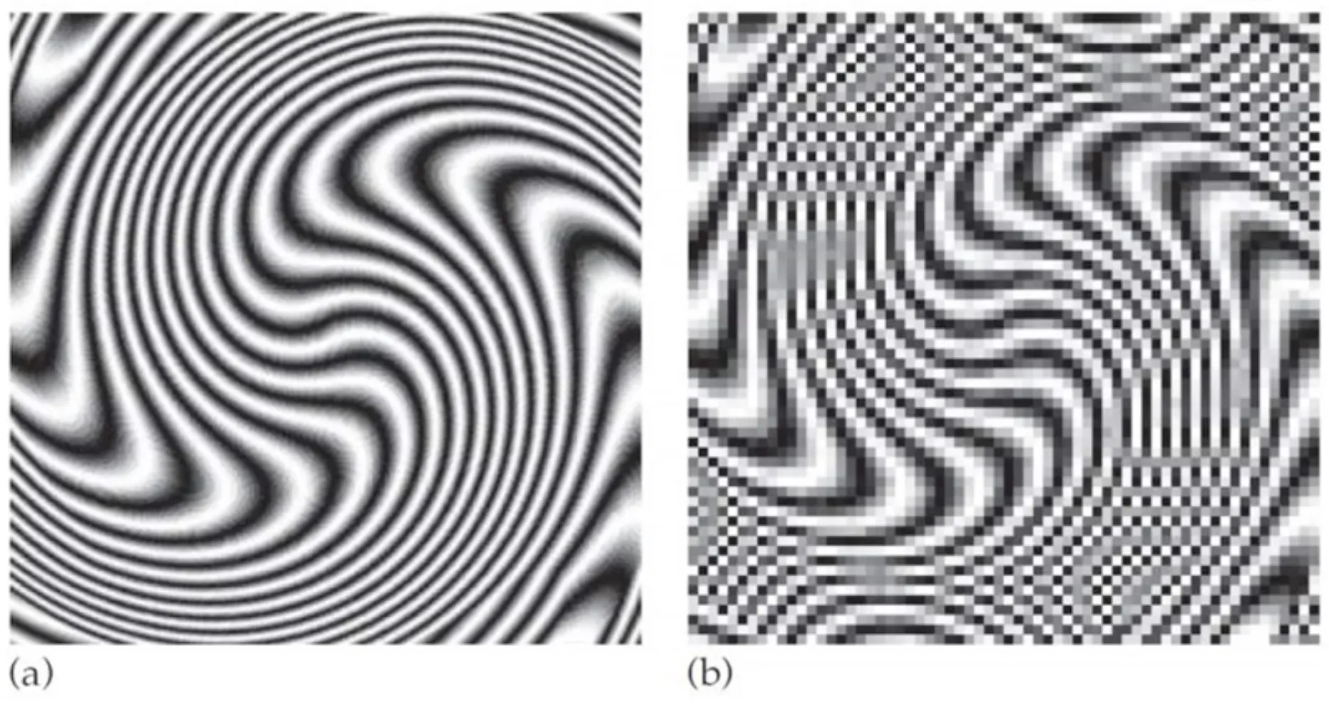 샘플링이 올바르게 수행되지 않아서 발생하는 신호의 왜곡을 앨리어싱이라고 한다.
