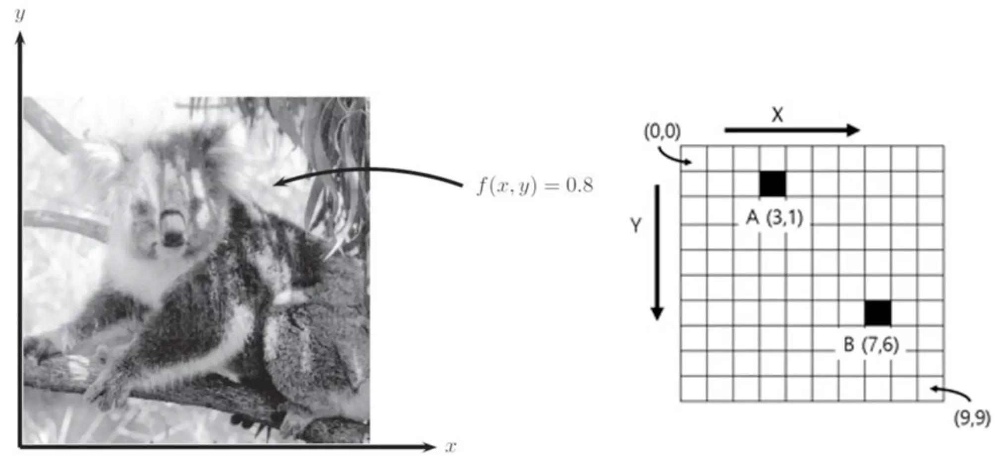 화소 또는 픽셀의 밝기를 강도(intensity)라고 한다.