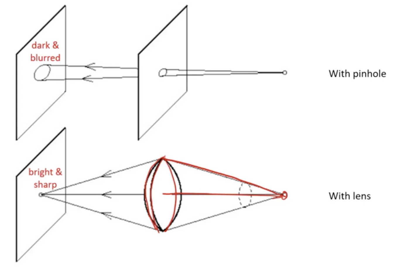렌즈는 핀홀 카메라의 문제점을 극복했다.