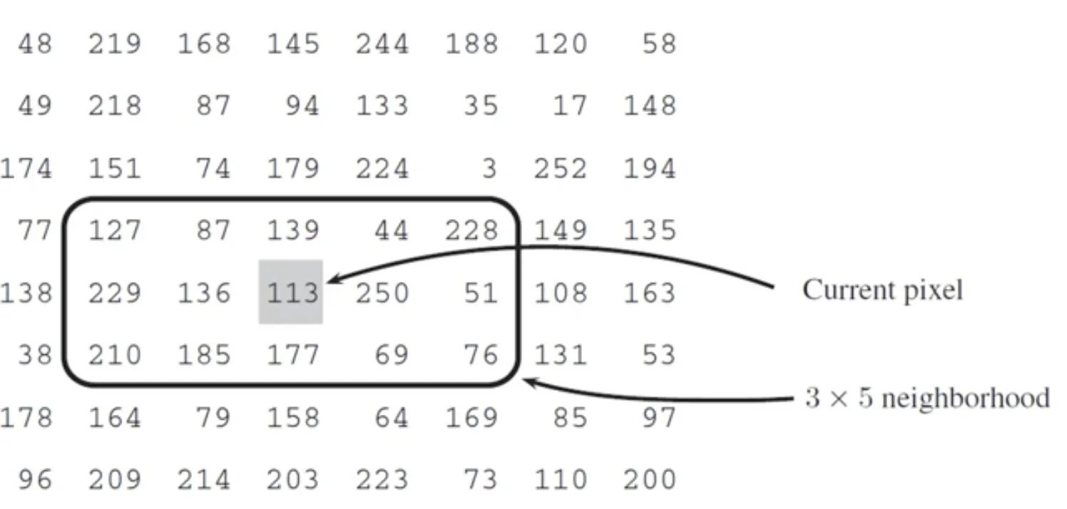 주어진 하나의 화소를 둘러싸고 있는 화소들을 이웃(neighborhood)이라고 한다.