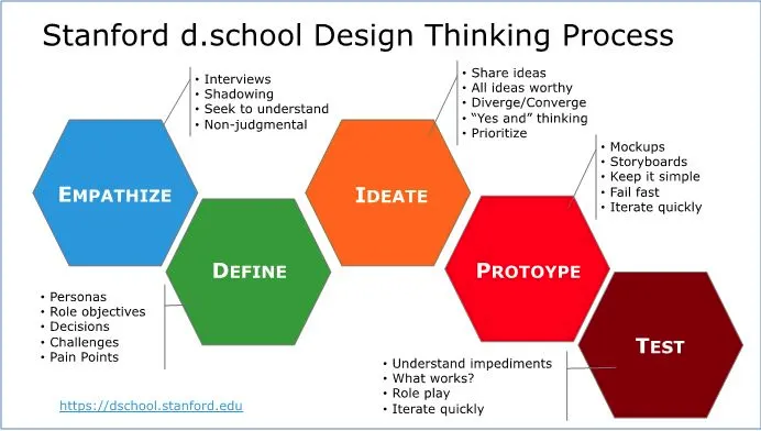 디자인 씽킹이라는 건 이상한 사람이 만든게 아니라 똑똑한 사람들이 몰려 있다는 스탠퍼드대학교에서 만든 창의적으로 생각하는 방법을 담은 프레임워크야. 여기서 주목해야 할 부분은 딱 앞에 두 단계야.