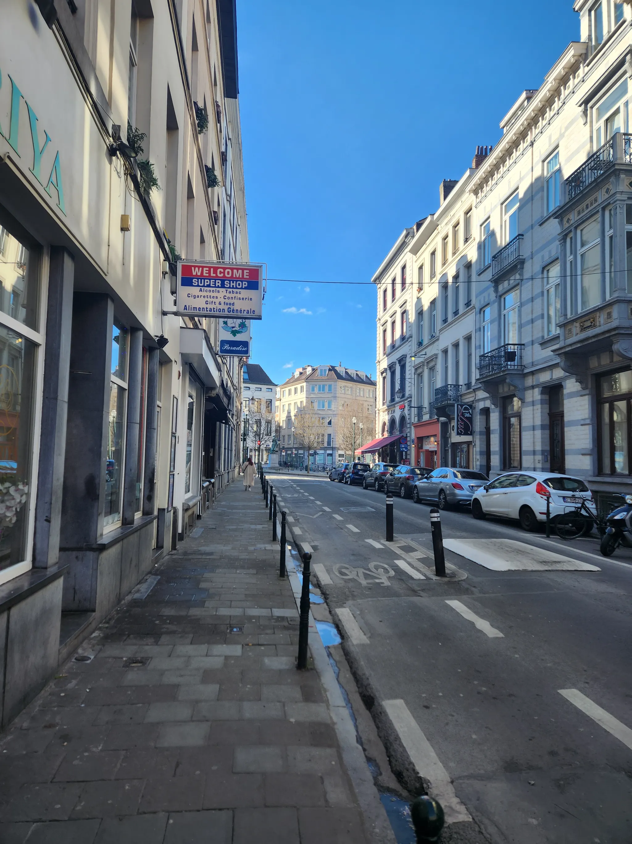 프랑스, 벨기에, 스위스의 압도적인 보행문화. 사람이 기다리면 먼저 멈춰선다. 자전거도로 환경은 좋은 곳도 많지만 안좋은 곳들이 훨씬 많다. 한국보다 자전거 도로가 잘돼있다고 하는 사람들은, 서울 자도를 제대로 안 다녀본 사람이다. 정확히는 자전거와 킥보드에 대한 인식 차이가 크다. 브뤼셀의 자전거도로를 보자. 이렇게 경계 없이 있는 자전거도로에서 한국은 그냥 차들이 넘나들지만 여기는 그런일이 없다.