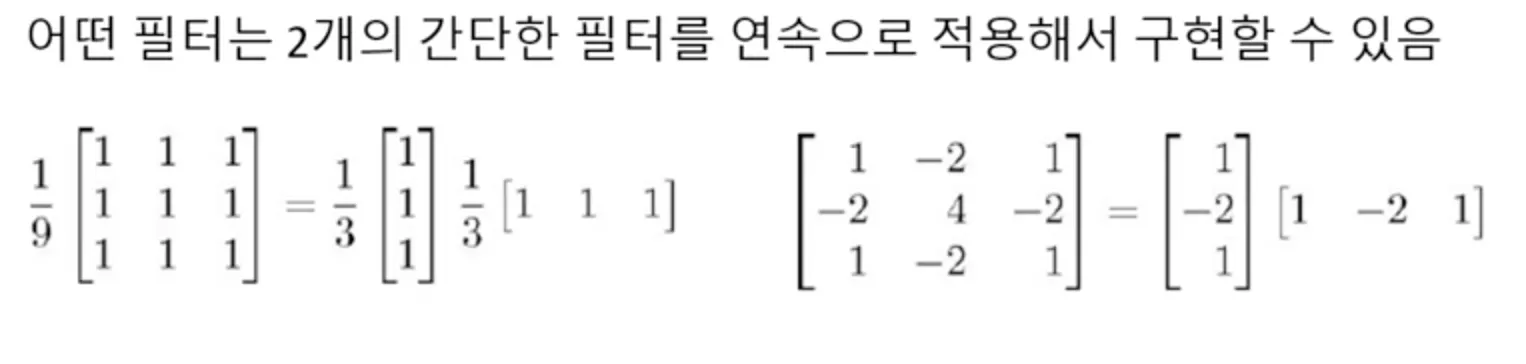 MobileNet(2017)등에서 제안한 Depthwise Separable Convolution 같은 것들도 결국 이런 영상처리의 최적화 아이디어를 뉴럴 네트워크에 적용한 것이다.