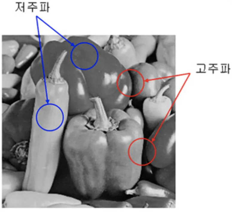 고주파: 짧은 거리 내에서 밝기변화가 매우 큰 성분