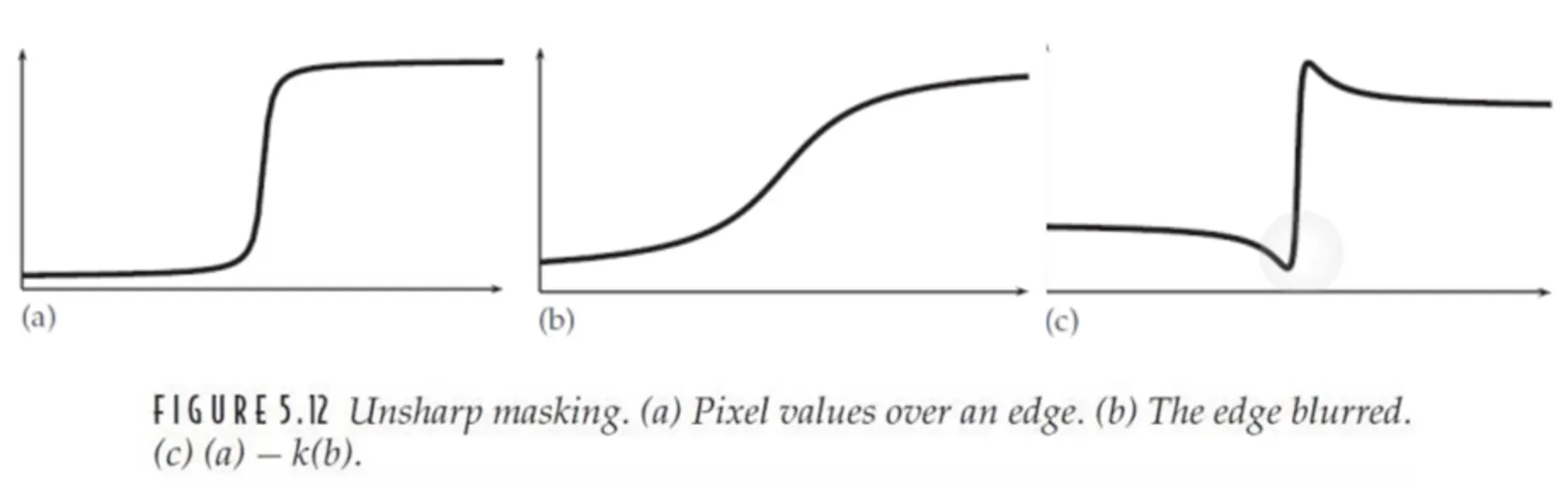 저주파 성분이 제거된 결과물을 원본 영상(a)에 더하면 고주파가 강조된 결과물(c)을 얻을 수 있다.