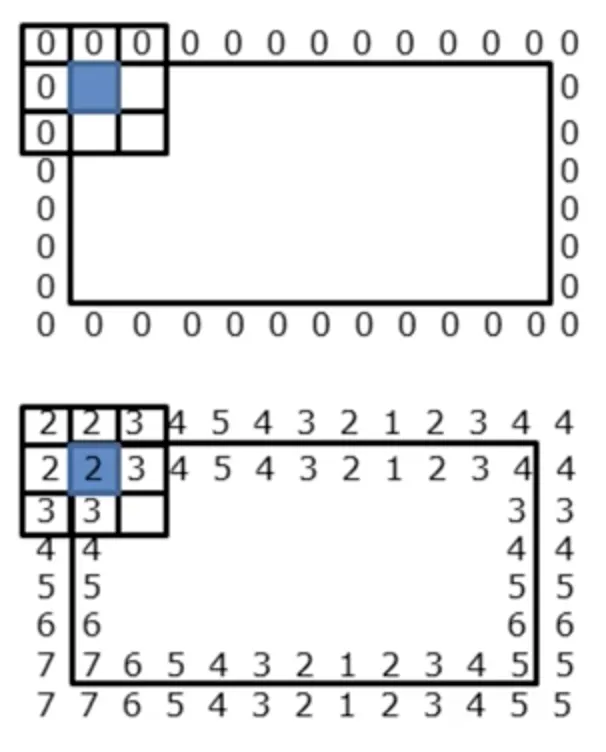제로패딩(zero padding): 영상의 테두리에서는 원하지 않는 결과가 나타날 수 있다.