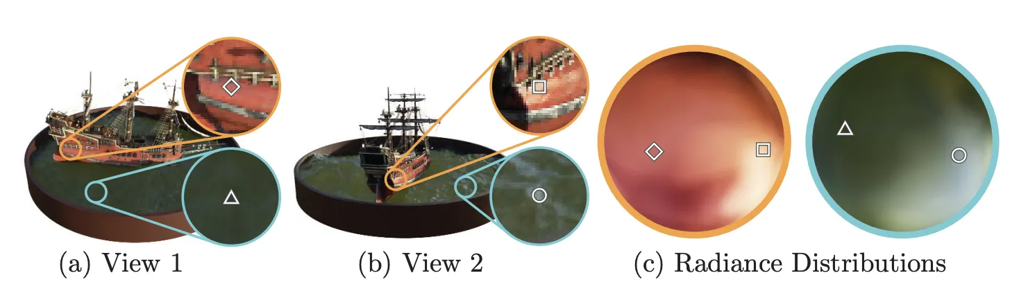 그림 (참고7), 실제로 동일한 3D 공간상의 점이라고 할지라도, 카메라가 바라보는 각도에 따라서 색상이 다르게 보일 수 있다!