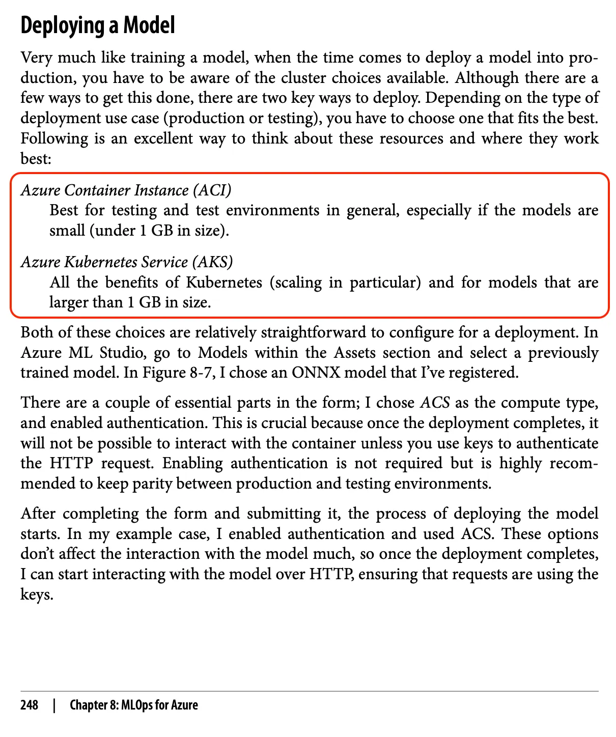 역자로 참가하고 있는 문제 많은 책 <Practical MLOps>에서도 뭣모르고 작성한 저자의 부실함이 적나라하게 드러난다. 쿠버네티스의 이점을 활용할 수 있는 것과 모델의 사이즈에는 그 어떠한 연관성도 없다. 모델이 분산배치되는 것은 아니기 때문이다. 이러나 저러나 모델은 하나의 컨테이너 안에 들어가게 된다.