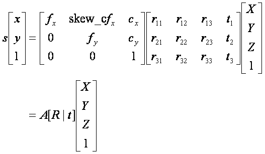 이런 마음을 알았는지 일부 자료들은 카메라 내부 파라미터를 다른 방식으로 표현하곤 한다. 초점거리 의 단위를 어떤 임의의 단위라고 생각하고, 로 놓는 방법이다(참고2). 를 픽셀 단위로 보아도 되고, 그렇지 않아도 되어서 훨씬 마음이 편안해진다. 게다가 이미지 센서의 픽셀 길이가 정방형이 아니라는 것을 명시적으로 표현해줄 수 있다는 장점도 있다.