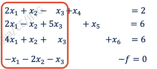근데 이게 진짜 어이없게 pivot 을 잘못 잡고 소거하면, 잘못된 결론에 도달하게 될 수 있다. 그 이유는 우리의 전제가 x1~x6 이 모두 양수여야 한다는 것이다.