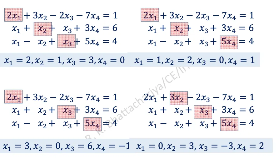 당연히 처음에는 x1, x2, x3, x4 사이에는 어떠한 위계도 존재하지 않는다. 따라서 어떤 녀석을 pivot 으로 잡느냐에 따라 basic solution 은 정말 다양하게 나타날 수 있다.