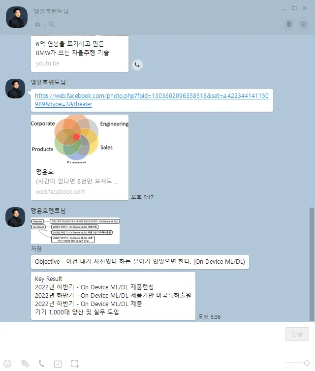 최근 만난 멘토님께서는, T 자형 인재가 되고 싶은 것이라고 진단을 해 주셨고, OKR 이라는 성과지표를 함께 세워 주시며 "다양한 것을 취하지만 그 사이에서도 전문 분야는 하나만 공부하도록" 그 목표치를 세워 주셨습니다. 그렇게 목표를 추진하기 전에, 이렇게 어쩌면 저의 미래를 미리 보셨을 수도 있는(?) 선배분의 의견을 한 번 여쭤보고 싶어서 이에 대한 해답을 들을 수 있을까, 고민을 남깁니다. 함께 고민해 주셔서 너무 감사합니다 ㅜㅜ
