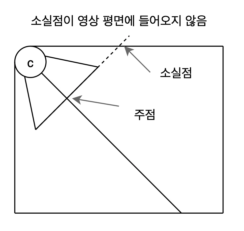 카메라의 회전에 따라, 소실점과 소실선이 영상을 벗어나있을 수 있다.