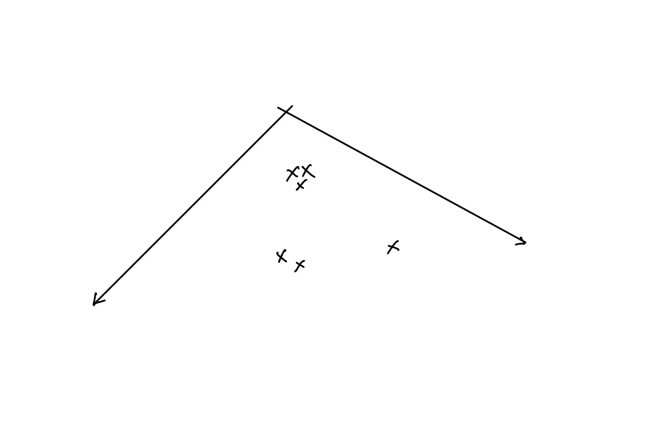이는 비단 위와 같은 1D 데이터 분포에만 사용할 수 있는 것은 아니다. 2D 의 경우에도 동일한 논리가 적용된다. 위와 같이 퍼져 있는 각각의 점들에 아래 그림과 같은 형태의 분포가 할당되어 있다고 생각해 보자.
