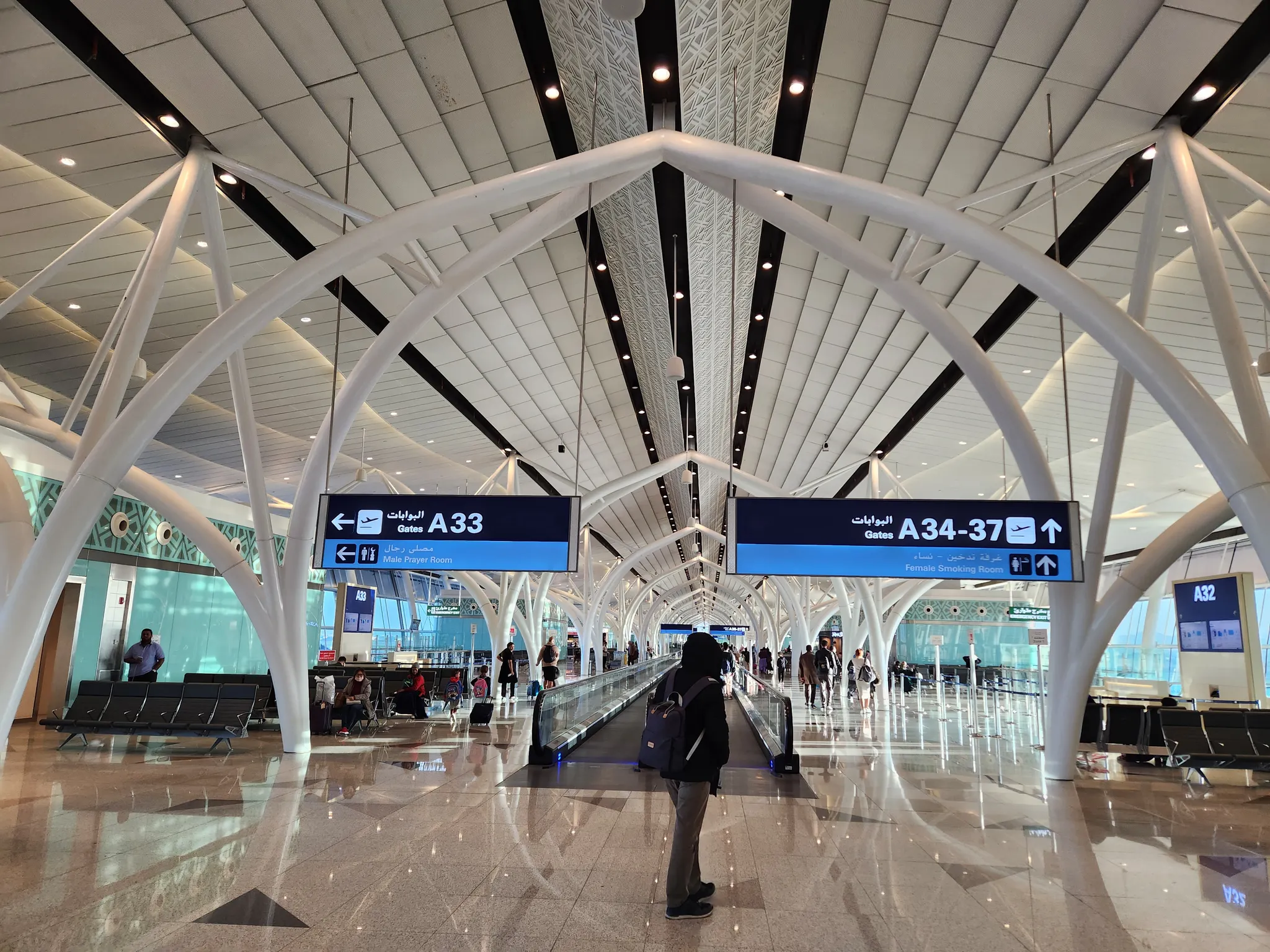 한 번 정차(이걸 숨은 경유지라고 하는 듯하다)하고(여기서 사람들이 우르르 내렸다. 새로 타지는 않았다), 그대로 또 몇 시간을 날아서 제다라는 공항에서 환승을 했다. 공항은 상당히 으리으리했다. 다만 수속하는 시간이 엄청 오래걸렸다. 소지품 검사를 또 해야한다. 아니 환승하는사람들은 그냥 좀 보내주면 안되는건가? 과거 변을 보다가 비행기를 놓친 이력이 있기 때문에 괜스리 애가 탔지만 갈아타기는 넉넉한 시간이었다.