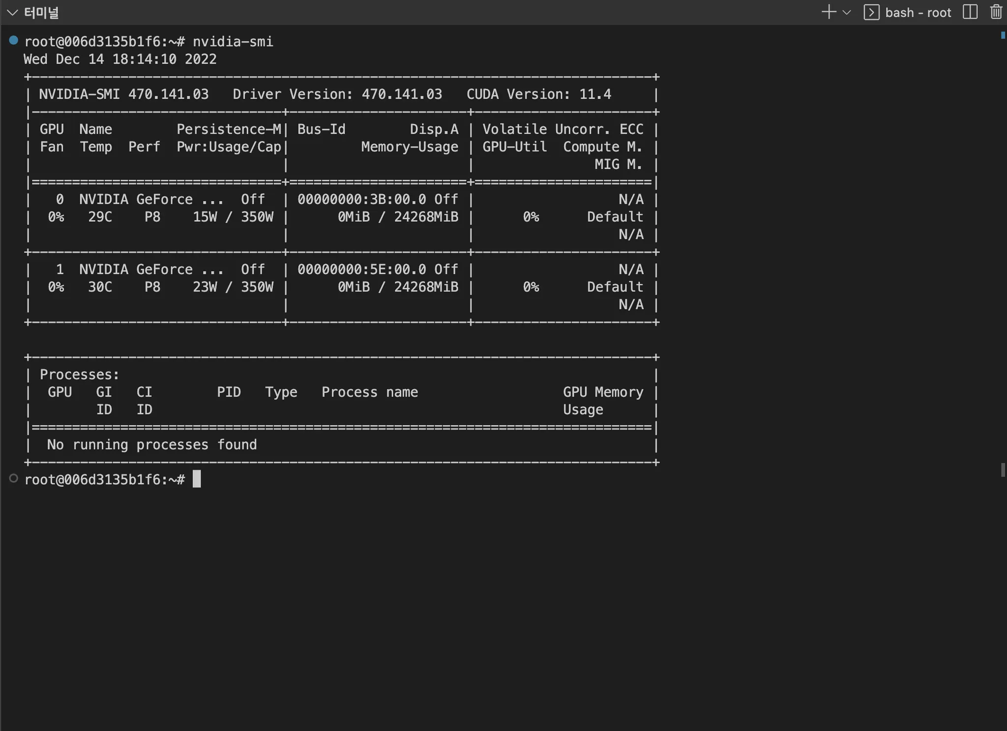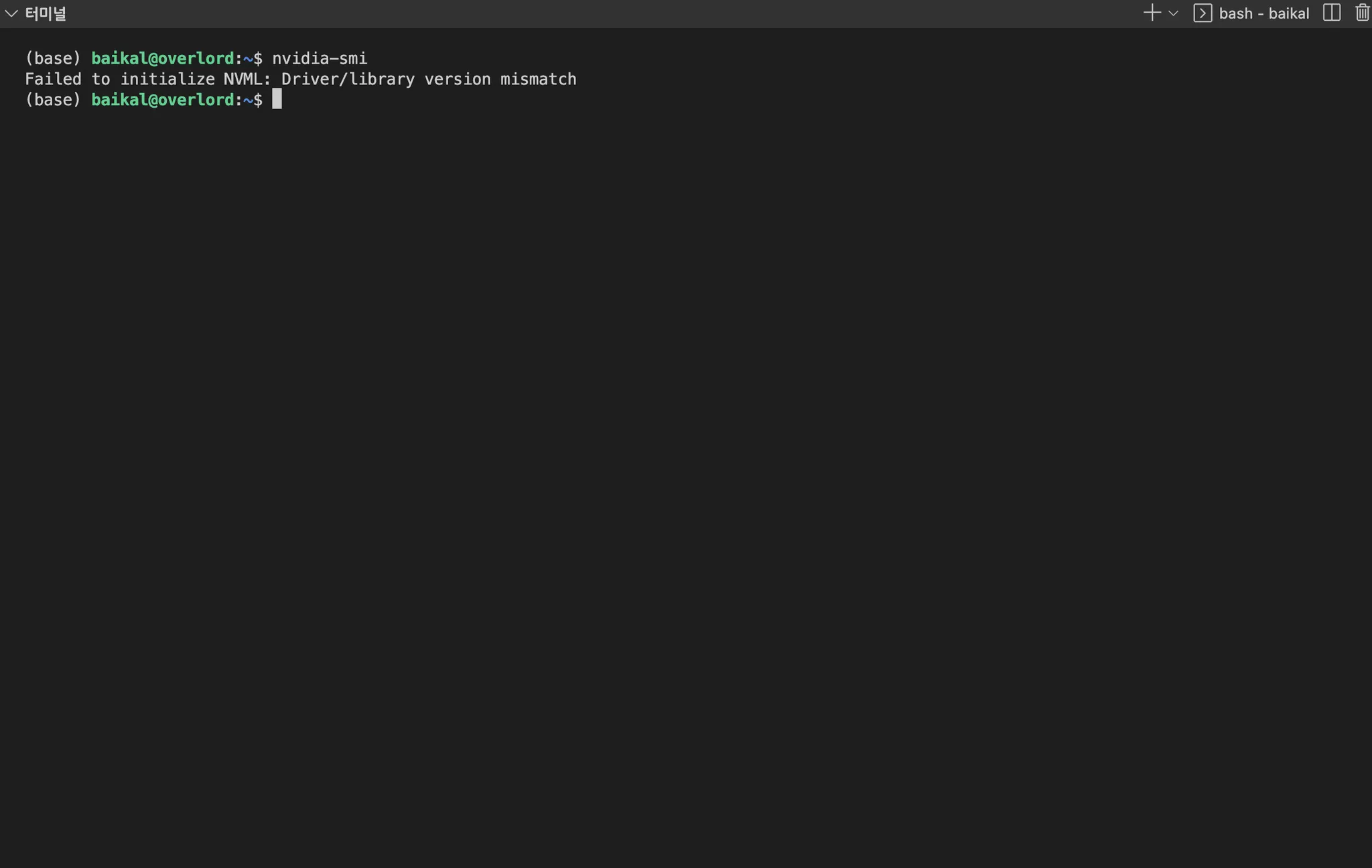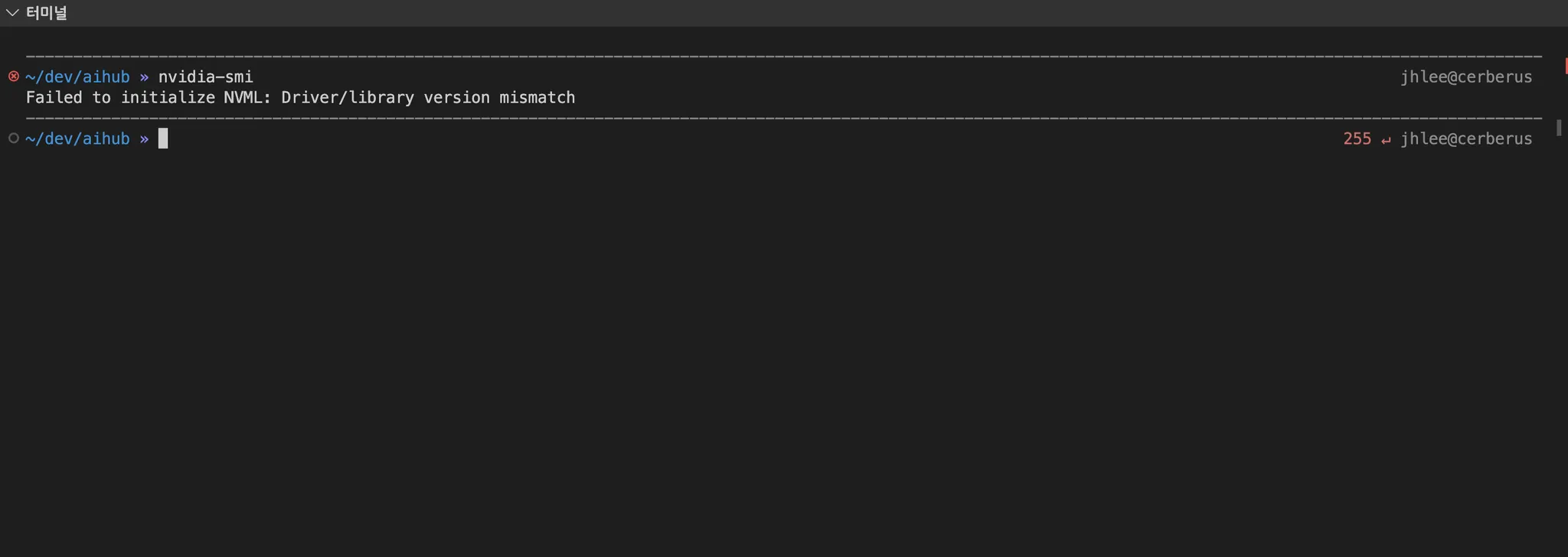 이 과정을 마쳤음에도 nvidia-smi 가 잡히지 않는 상황. 물론 컨테이너에서는 잡힘. 재부팅을 안해서 그런가… 하지만 재부팅하기 두렵다. 되던것도 안될까봐.